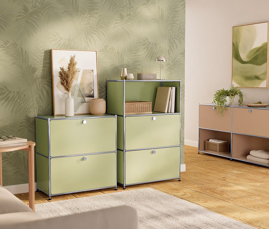 Metall-Kommode »CN3« mit 2 versetzbaren Klappenfächern, pistazie