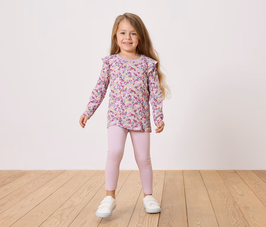 2 Kinder-Langarmshirts mit Applikation, Blumen