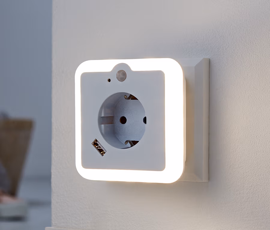 LED-Nachtlicht mit Steckdose und USB-Lademöglichkeit