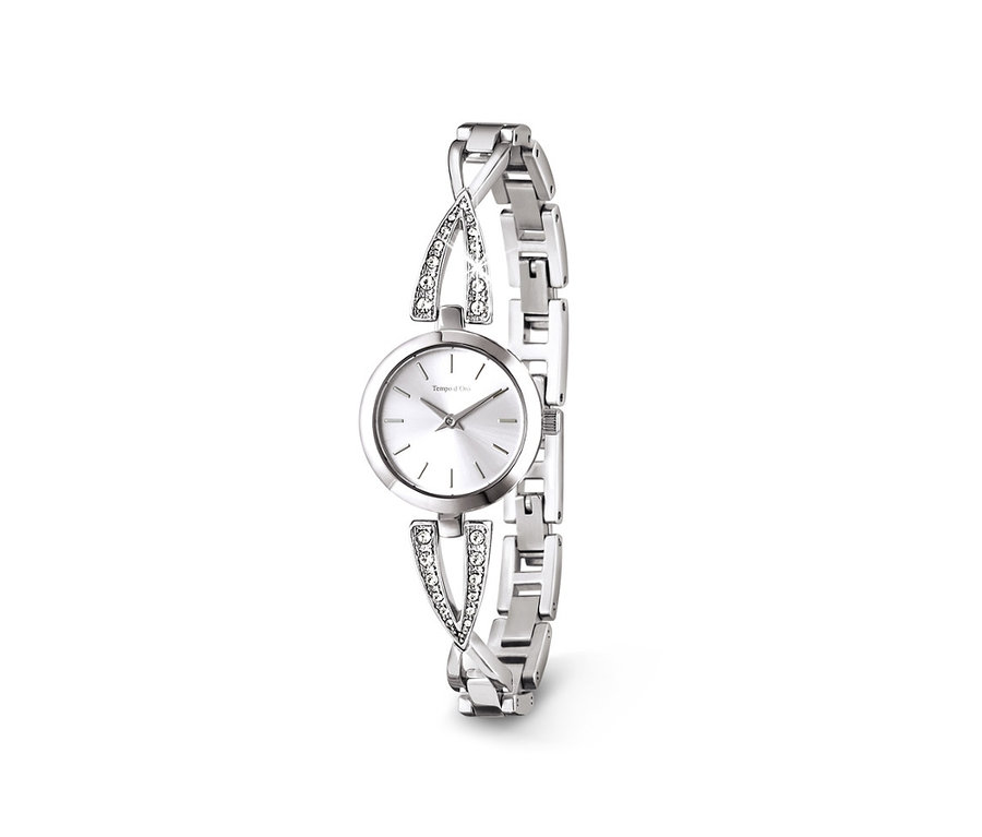 - Quarzwerk mit Stunden- und Minutenzeiger, das Armband hat herausnehmbare Bandglieder mit Klappmechanismus