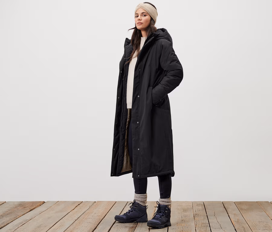 - Besonders hochschließender Kragen mit weitenregulierbarer Kapuze