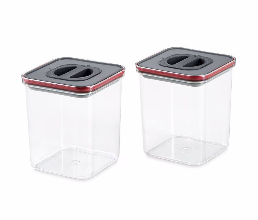 Essen vom Vortag oder auf Vorrat – mit diesem Set hält sich alles möglichst lange frisch. Dazu behält man durch das transparente Design jederzeit den Überblick, was sich noch in den (Kühl-)Schränken befindet. Dank der Deckel mit Silikondichtung sind die zwei Frischhaltedosen nicht nur auslaufsicher, sondern erzeugen auch ein Vakuum, welches das Aroma hält. Außer zur Aufbewahrung eignen sich beide Dosen auch zum Einfrieren, Auftauen und Aufwärmen von Lebensmitteln. Ein Allrounder für jede Küche.