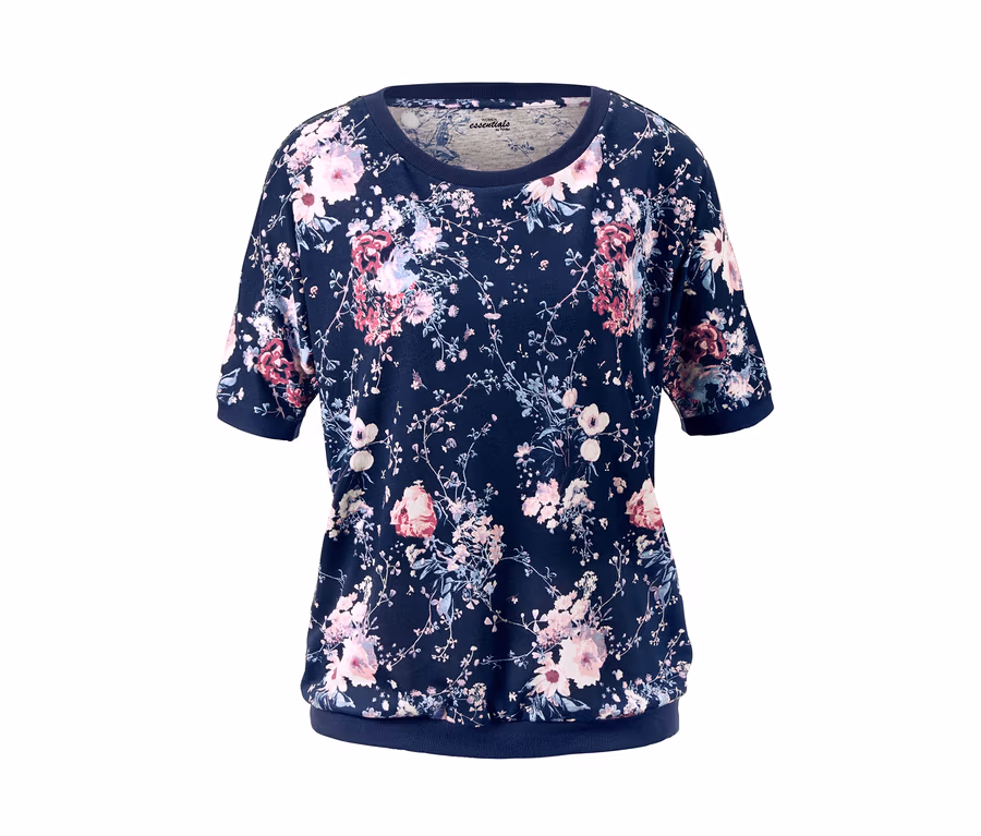 - Dunkelblau mit floralem Alloverprint