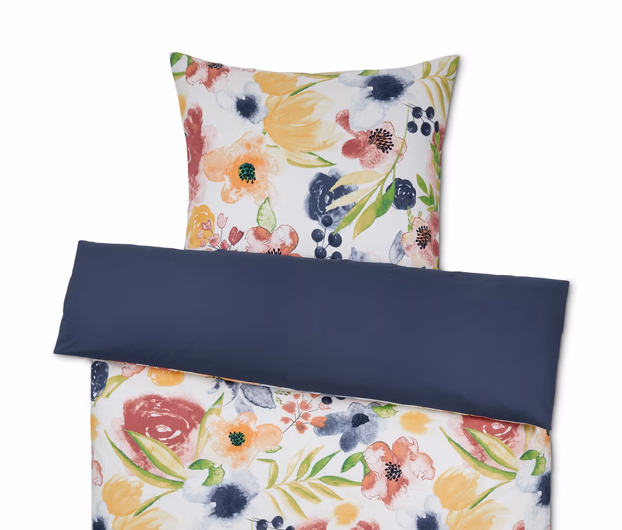 - 1 Seite weiß mit mehrfarbigem, floralem Aquarellprint, 1 Seite blau