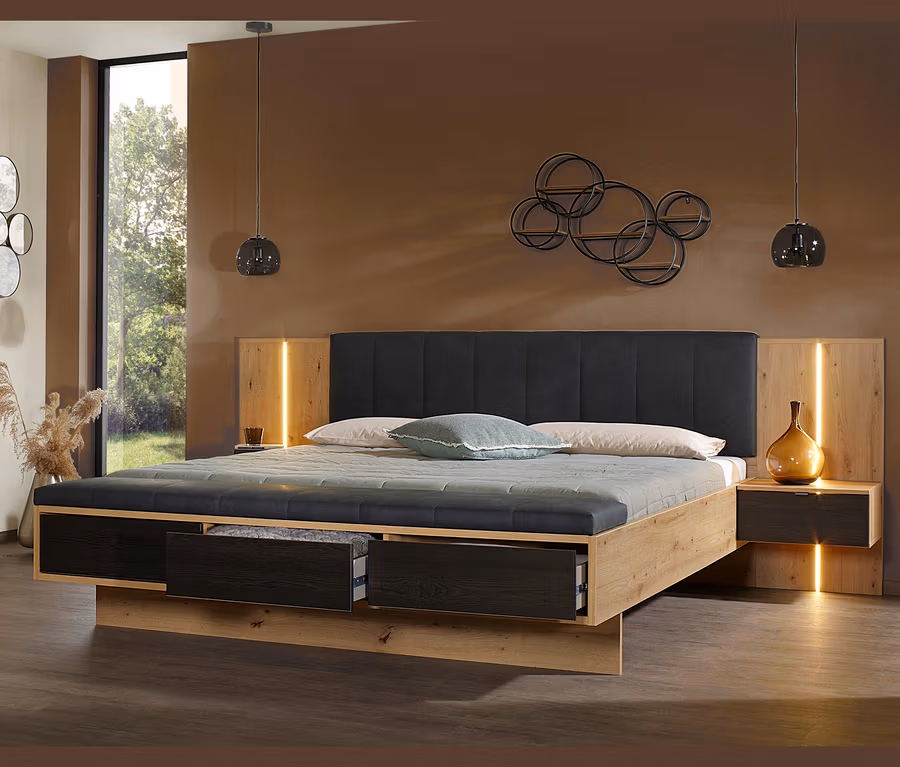 • Hängende Nachttische mit stimmungsvoller LED-Beleuchtung