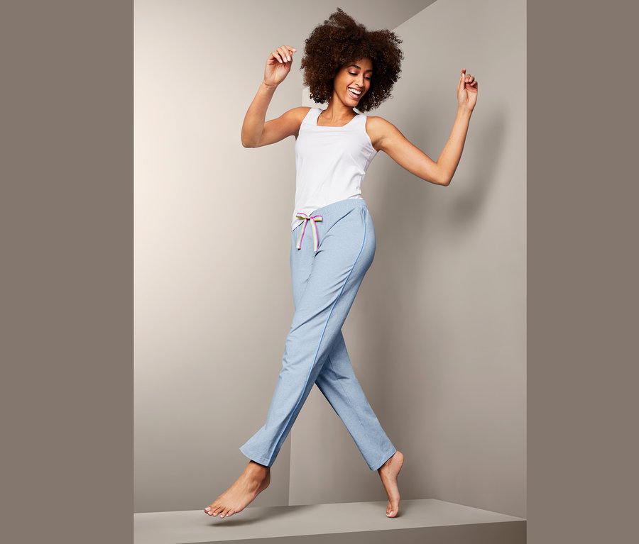 Einfach mal ein paar entspannte Momente zu Hause verbringen, haben wir uns verdient – fehlt nur noch die passende Wohlfühlkleidung. Und diese Relaxhose ist dabei die optimale Wahl. Mit ihrem legeren Schnitt und dem hohen Anteil an nachhaltig angebauter GOTS zertifizierter Baumwolle liegt sie jederzeit angenehm weich auf der Haut, während Elasthan für Formbeständigkeit, einen perfekten Sitz und hohen Tragekomfort sorgt. Die Damenhose hat eine Tasche auf der Rückseite und der elastische Bund mit Bindeband macht sie besonders bequem.