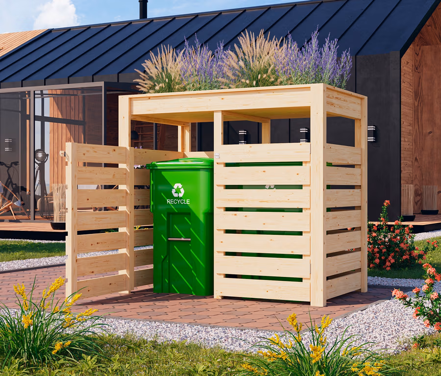 - Bietet Platz für 2 handelsübliche 240-l-Mülltonnen