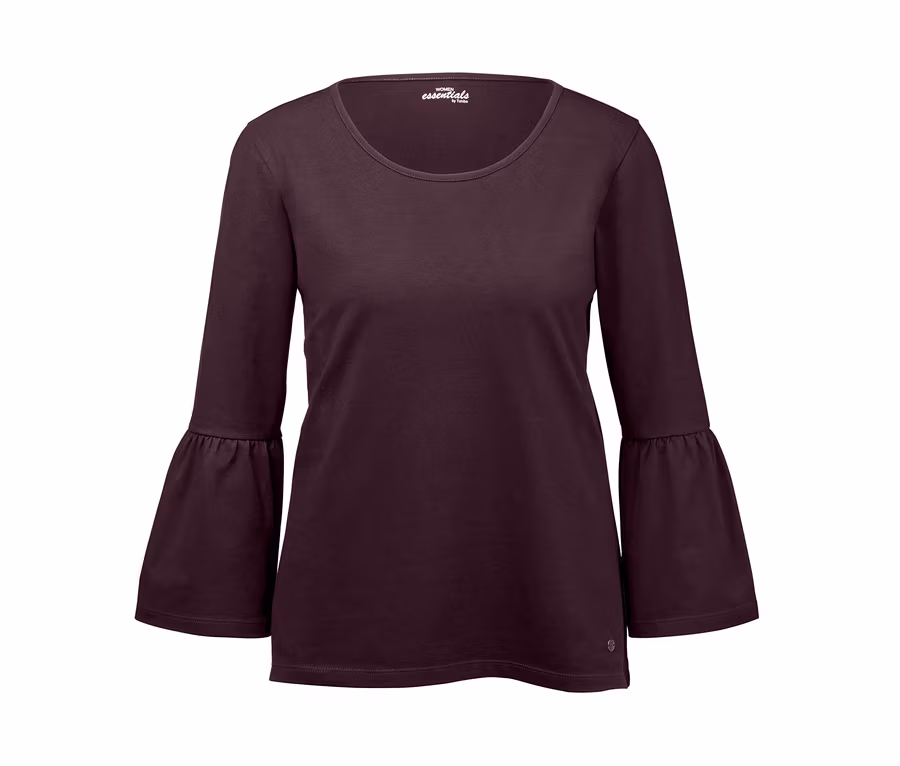 Oberteile wie dieses gehören in jeden Kleiderschrank: Das Shirt ist in besonders weicher Baumwoll-Stretch-Qualität gefertigt und durch den verkürzten Langarm mit angsetzten Volants ein echter Eyecatcher. Das Oberteil mit Rundhalsausschnitt ist durch Elasthan formbeständig und bietet perfekten Sitz bei hohem Tragekomfort. Ein Metallplättchen am Saum setzt einen dekorativen Akzent.
