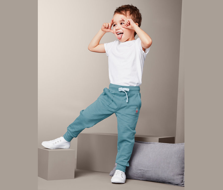 Die Kinder-Hose ist nicht nur superbequem, sondern sieht auch cool aus. Das dicke Baumwolltape setzt einen modischen Akzent und dient darüber hinaus zur Weitenverstellbarkeit des Bundes. Platz für Kleinigkeiten bieten die zwei aufgesetzten Eingrifftaschen mit kleinem Print vorne rechts. Weiterer Pluspunkt: Die Jogginghose ist GOTS zertifiziert.