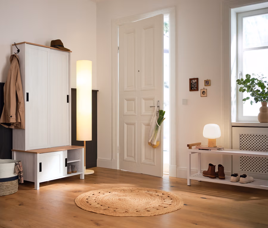 • Kompakt designtes Stauraummöbel – besonders geeignet für Flure und Eingangsbereiche mit wenig Platz