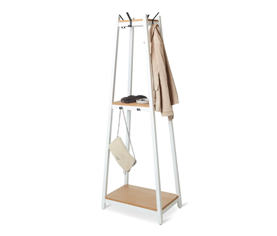 - Mit 4 Kleiderhaken und 6 Knöpfen aus pulverbeschichtetem Metall