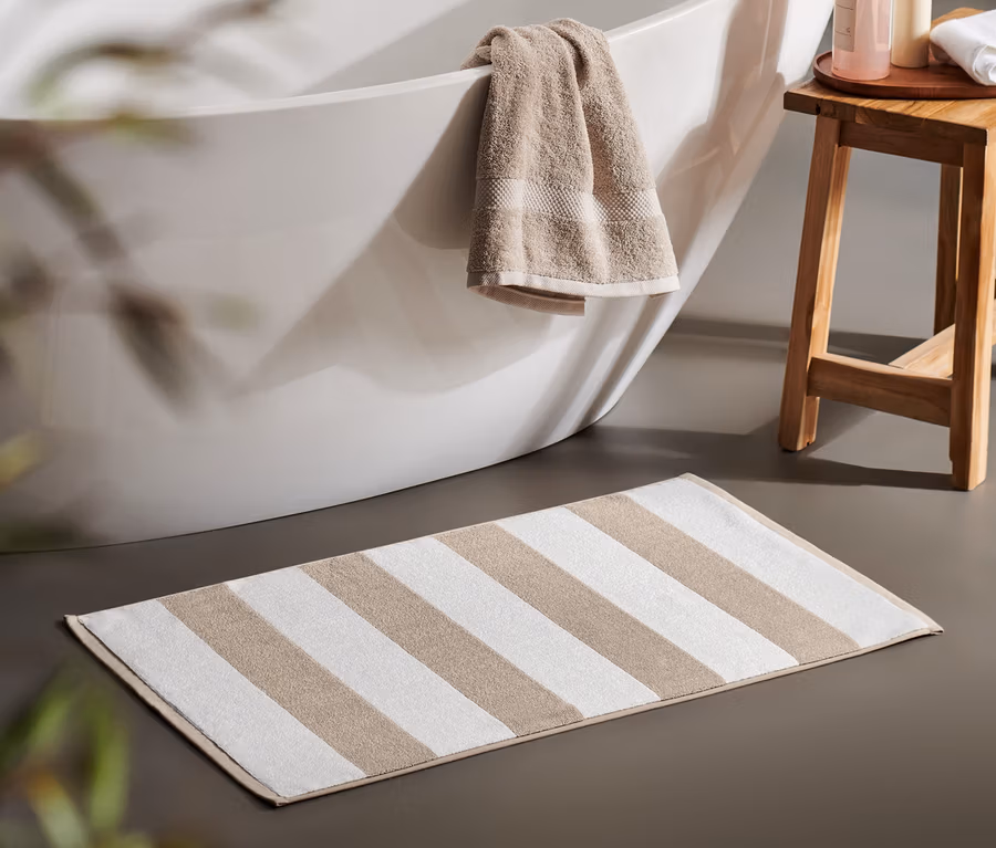 Hochwertiger Duschvorleger, beige-weiß gestreift