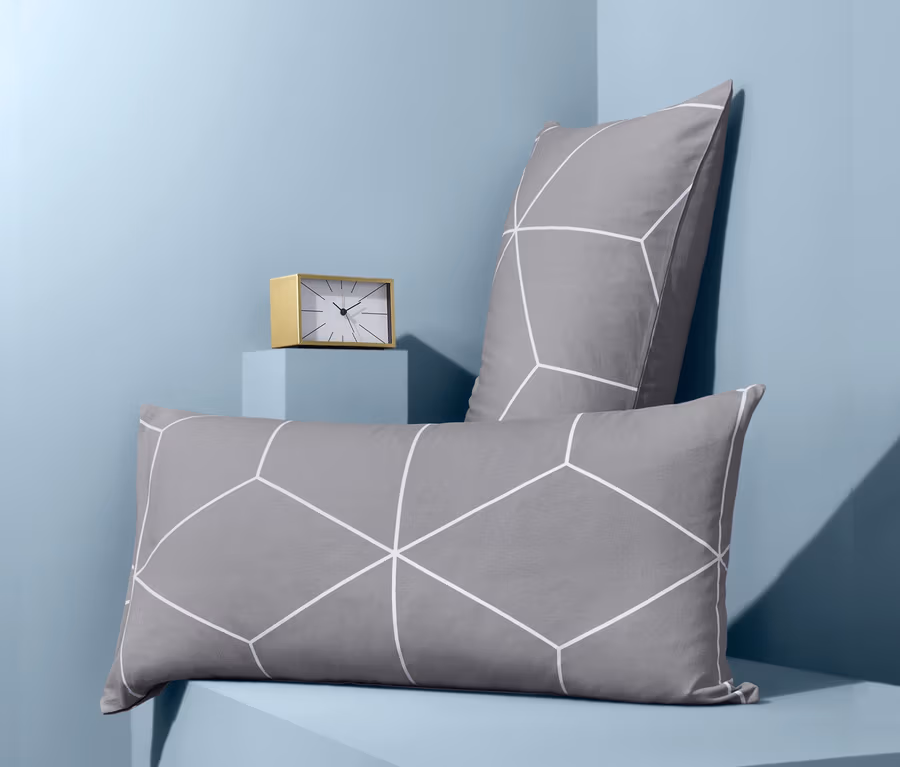 Diese beiden Jersey-Kopfkissenbezüge können schon optisch mit ihrem stylischen, geometrischen Print punkten – vor allem aber bieten sie im Schlaf allerhöchsten Komfort. Ihre elastische Maschenware ist aus reiner, nachhaltig angebauter Baumwolle gefertigt, wodurch die Bettwäsche besonders weich und anschmiegsam ist. In der Handhabung sind die Kissenbezüge erfreulich komfortabel: Bügeln muss man sie nach der Wäsche nicht, und mit ihren Reißverschlüssen hat man die Kissen im Handumdrehen bezogen.