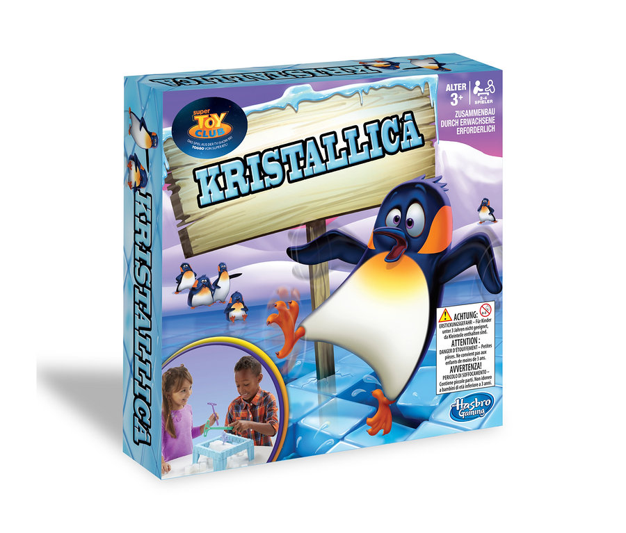 Wer gerne den Super-Toy-Club schaut, kennt »Kristallica« vermutlich – immerhin war es da schon Finalspiel! Das lustige kurzweilige Spiel ist ein kindgerechtes Geschicklichkeitsspiel, das immer wieder einen Riesenspaß macht. Das Prinzip ist einfach: In den Rahmen werden Eiswürfel aus Plastik gesteckt, dann wird der kleine Pinguin darauf platziert. Jetzt dürfen die Kinder mit ihren Hämmerchen die Würfel rausklopfen – wem es gelingt, den Pinguin bis zum Schluss im Spiel zu halten, gewinnt! Im Spiel sind zwei Hammer enthalten, man kann sie aber auch weiterreichen und es mit bis zu vier Personen spielen. Ein tolles Spiel im Kreis von Freunden oder mit der Familie.