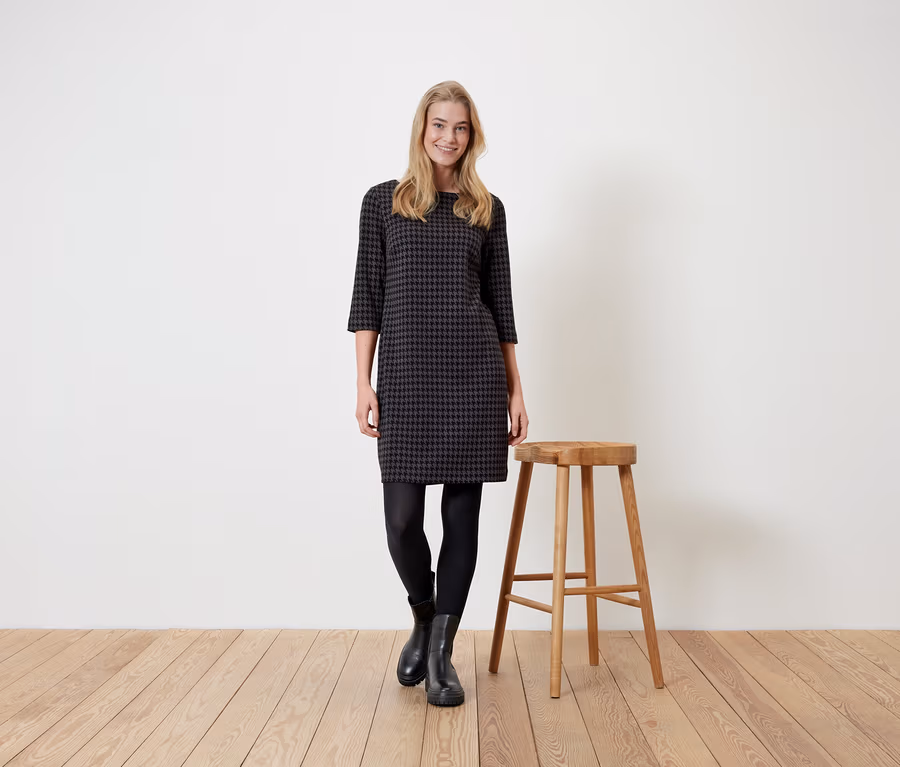 Jerseykleid mit Hahnentritt-Jacquard