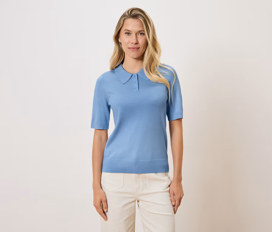- Mit Polokragen und Knopfleiste