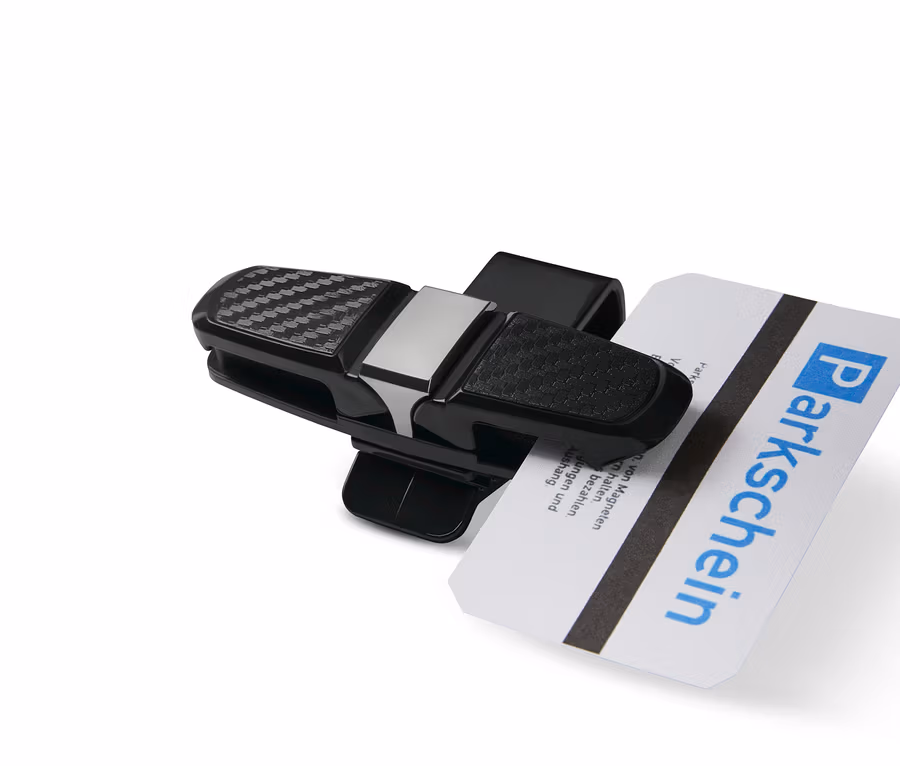 - Griffbereites, sicheres Aufbewahren an der Sonnenblende