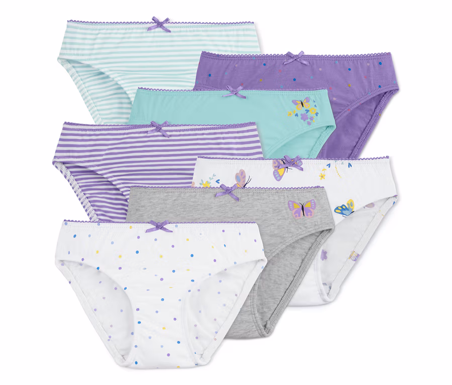 Mit diesen sieben Slips in frischen, freundlichen Farben sind die Kleinen immer gut unterwegs. Die Mädchenunterhosen sind in weicher Single-Jersey-Qualität mit einem hohen Anteil an Bio-Baumwolle gefertigt und sitzen den ganzen Tag besonders angenehm auf der empfindlichen Haut. Elasthan sorgt im Stoff für Formbeständigkeit, einen perfekten Sitz und zusätzlichen Tragekomfort. Die bequemen Höschen sind mit Baumwollzwickel gearbeitet und ihr Bund hat eine elastische Zierkante sowie eine dekorative Wäscheschleife.