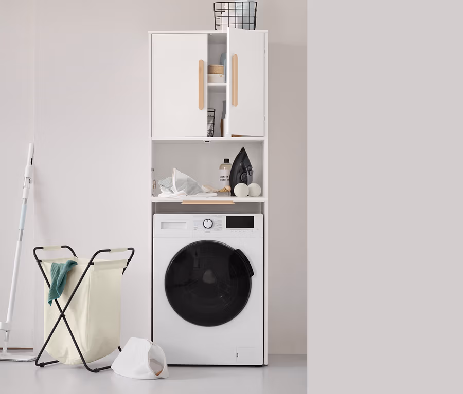 Waschmaschinenschrank mit aufklappbarer Arbeitsfläche