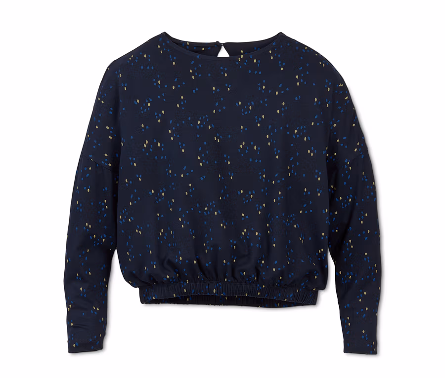 - Dunkelblau mit Alloverprint und Glitzerdetails