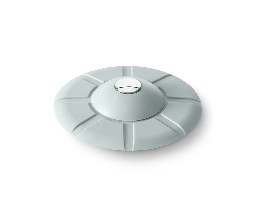- Durch Drücken in der Mitte wird der Abfluss geöffnet, Herunterdrücken des Randes schließt den Abfluss