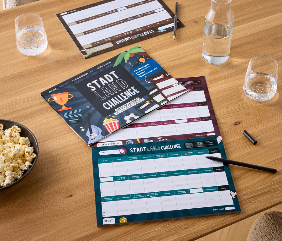 - Der Spieleklassiker: Mit dieser spannenden Stadt, Land, Challenge-Edition bringst du immer eine große Portion Spaß mit in die Runde! In 100 Kategorien könnt ihr euer Wissen testen und eure Kreativität unter Beweis stellen. Von einfachen Fragen bis hin zu kniffligen Kategorien – hier ist für jeden etwas dabei.