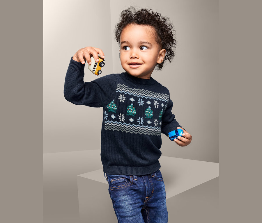 - Bequemer Kinderpullover mit weihnachtlichem Norweger-Einstrick