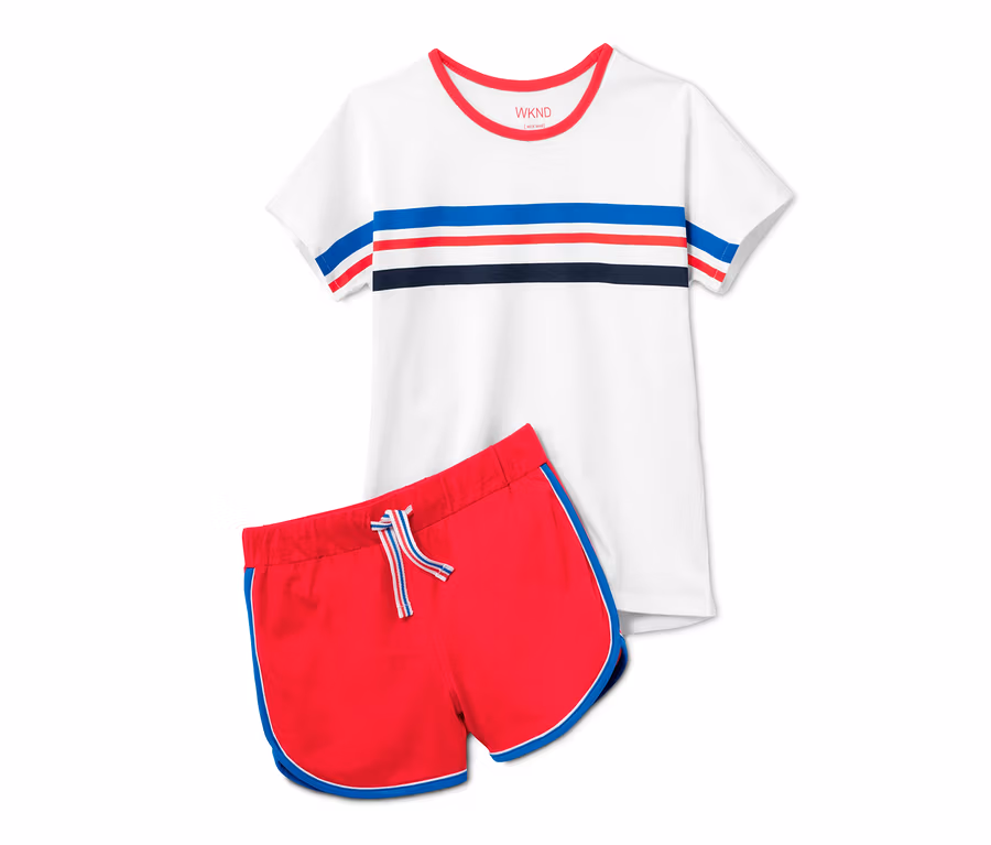 - Oberteil weiß mit mehrfarbigem Streifenprint