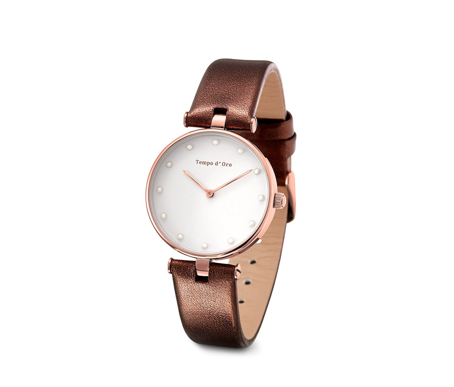 - Gehäuse, Dornschließe und Zeiger roségoldfarben