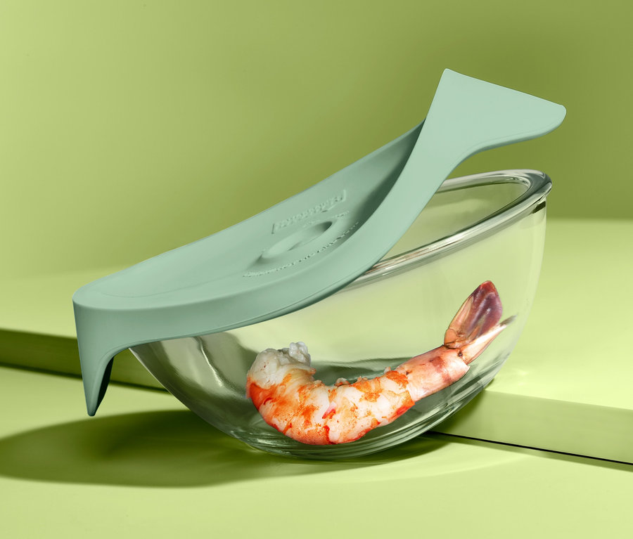 Die Schüssel aus hochwertigem Borosilikatglas ist nicht nur hitzebeständig, sie kann sich auch ziemlich gut sehen lassen und eignet sich dadurch außer zum Zubereiten auch gleich zum Servieren. Der Silikondeckel hat ein Loch im Deckel, durch das Dampf entweichen kann, sodass kein Überdruck entsteht, und eine seitliche Abgießöffnung für überschüssiges Wasser.