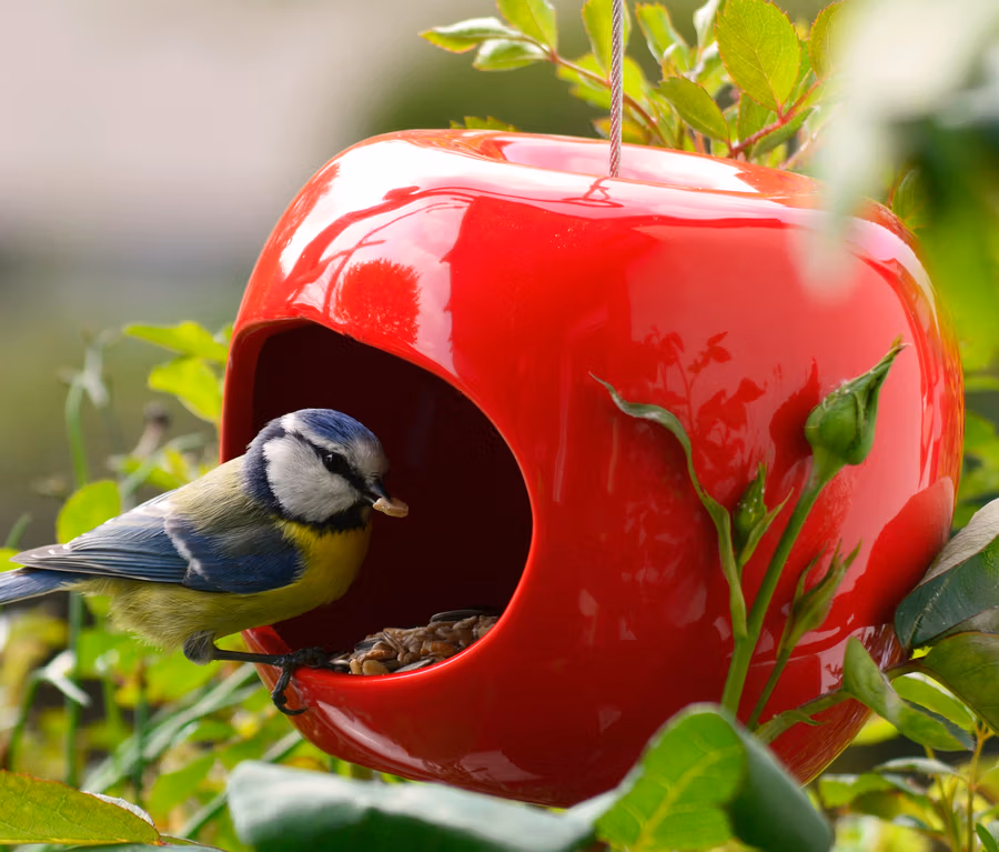 - Farbenfrohe Futterstellen im Apfel-Design
