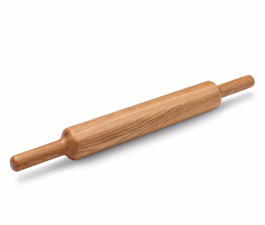 Eine schöne und praktische Alternative zum klassischen Nudelholz ist diese Teigrolle. Sie ist aus einem einzigen Stück FSC®-zertifiziertem Eichenholz gefertigt und erlaubt durch die breite Walzfläche ein einfaches Ausrollen. Ob Kuchen, Kekse oder Pizza – die Teigrolle sorgt umkompliziert für flache Teigflächen.
