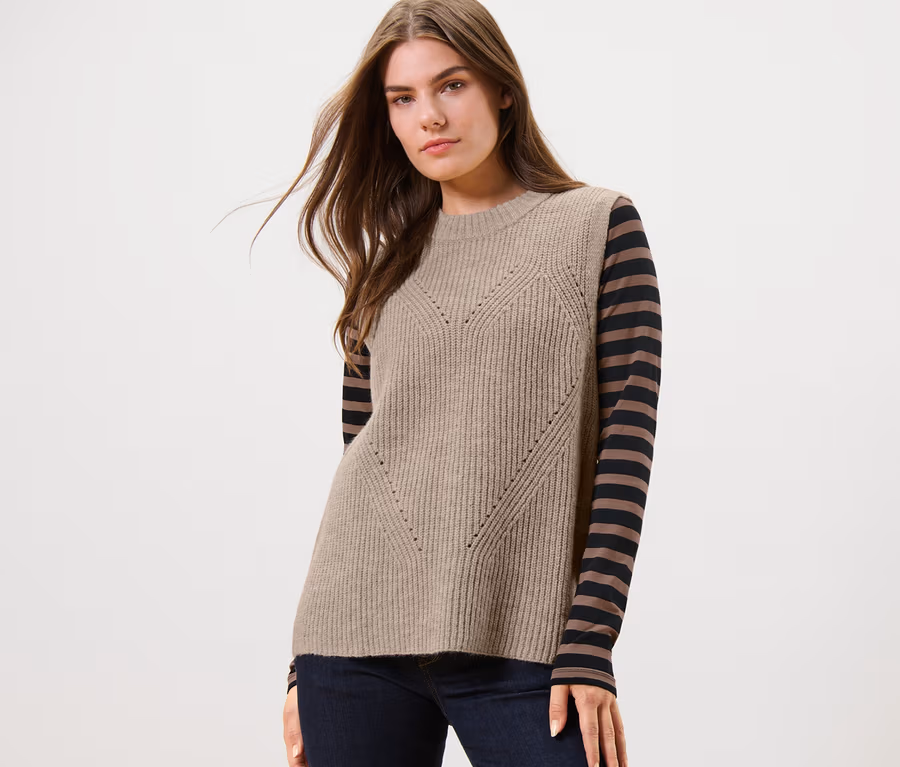 - Rundhalsausschnitt mit elastischem Rippbündchen