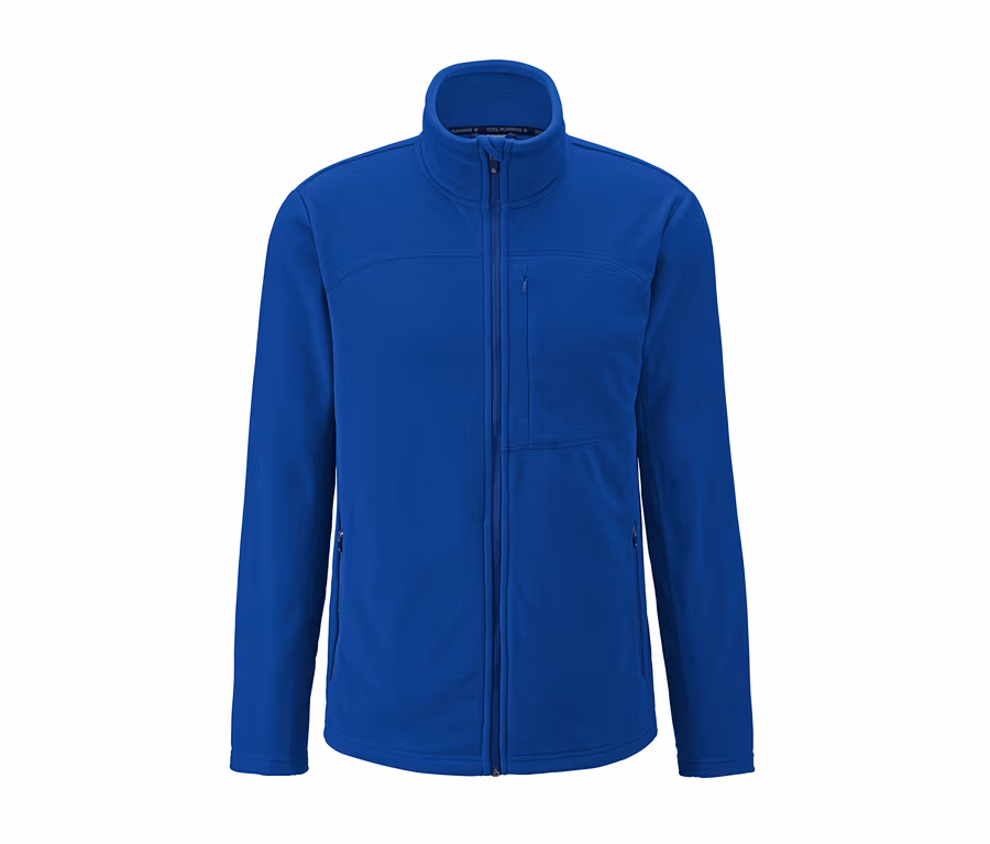 Mit dieser Microfleecejacke kann einem kalter Wind beim Laufen nichts anhaben. Die Fitness-Jacke ist atmungsaktiv, wärmeisolierend sowie feuchtigkeitstransportierend und bietet dank elastischer Einsätze optimale Bewegungsfreiheit. Sie hat zwei Reißverschluss-Eingrifftaschen sowie eine Brusttasche mit nahtfeinem Reißverschluss. Eine Antipilling-Ausrüstung verhindert, dass sich Faserknötchen bilden. Außerdem ist sie am Frontreißverschluss mit Kinnschutz sowie mit einem durchgehenden Untertritt ausgestattet.