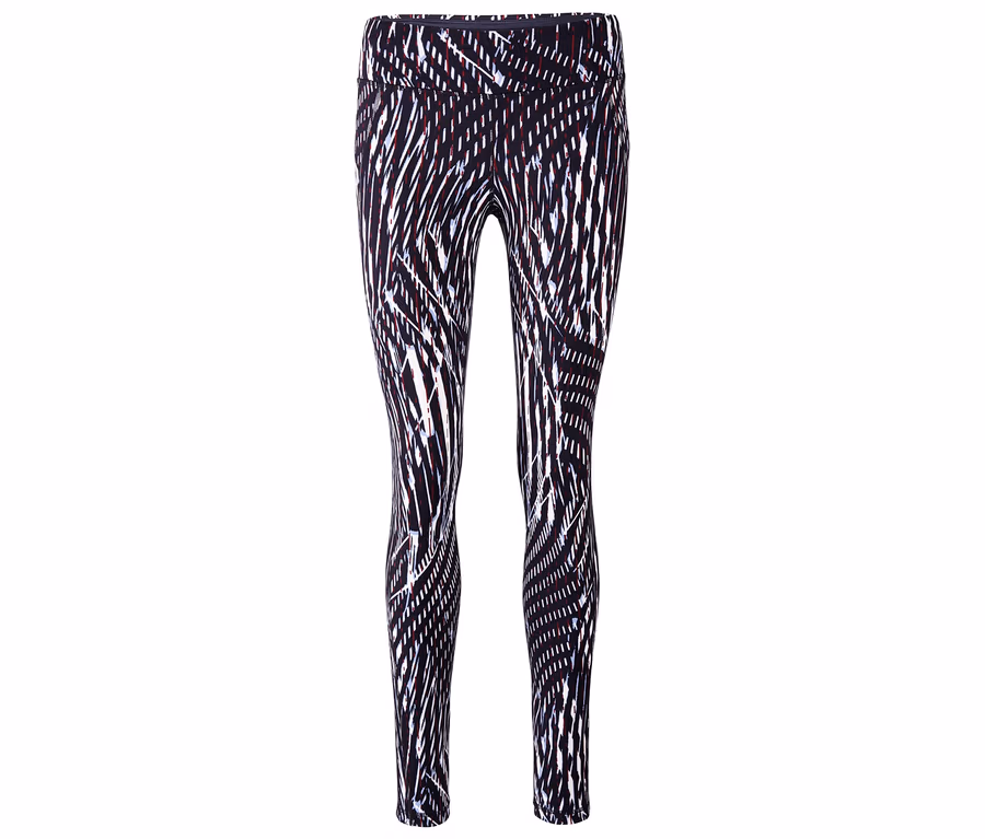 Der breite, elastische Bund der Sporthose kann mit innenliegenden Bindebändern in der Weite angepasst werden. Außerdem sorgt die spezielle »Sexy back«-Nahtführung für eine betont feminine Silhouette. Auf der Rückseite bietet eine kleine Reißverschlusstasche Platz, damit man zum Beispiel den Haustürschlüssel unterbringen kann.