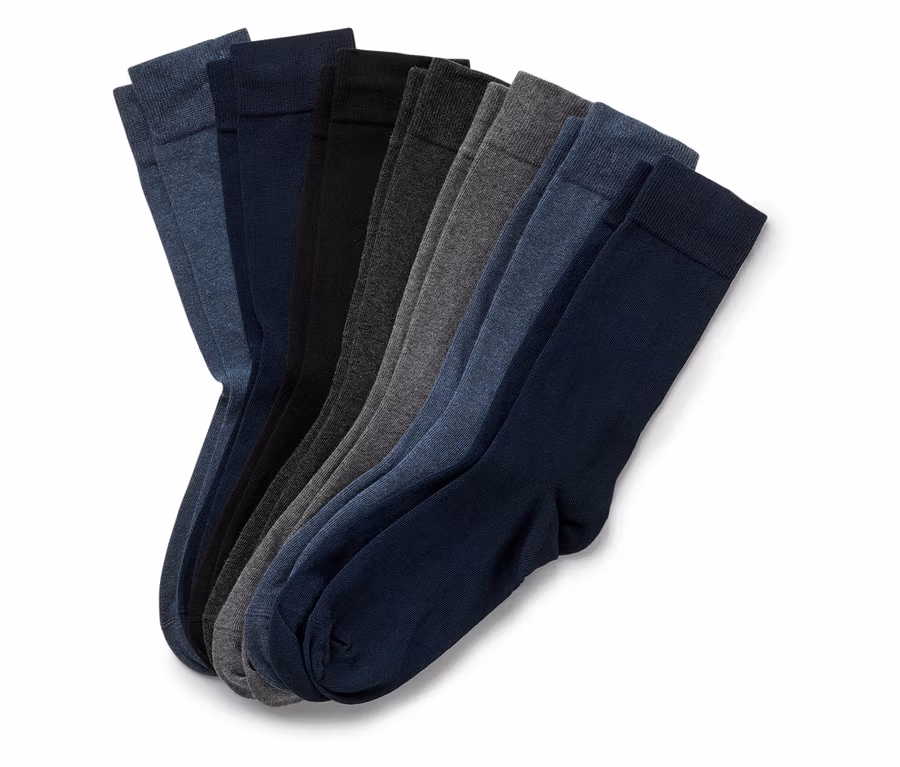 - 1x schwarz, 1x anthrazit meliert, 1x hellgrau meliert, 2x blau meliert, 2x dunkelblau