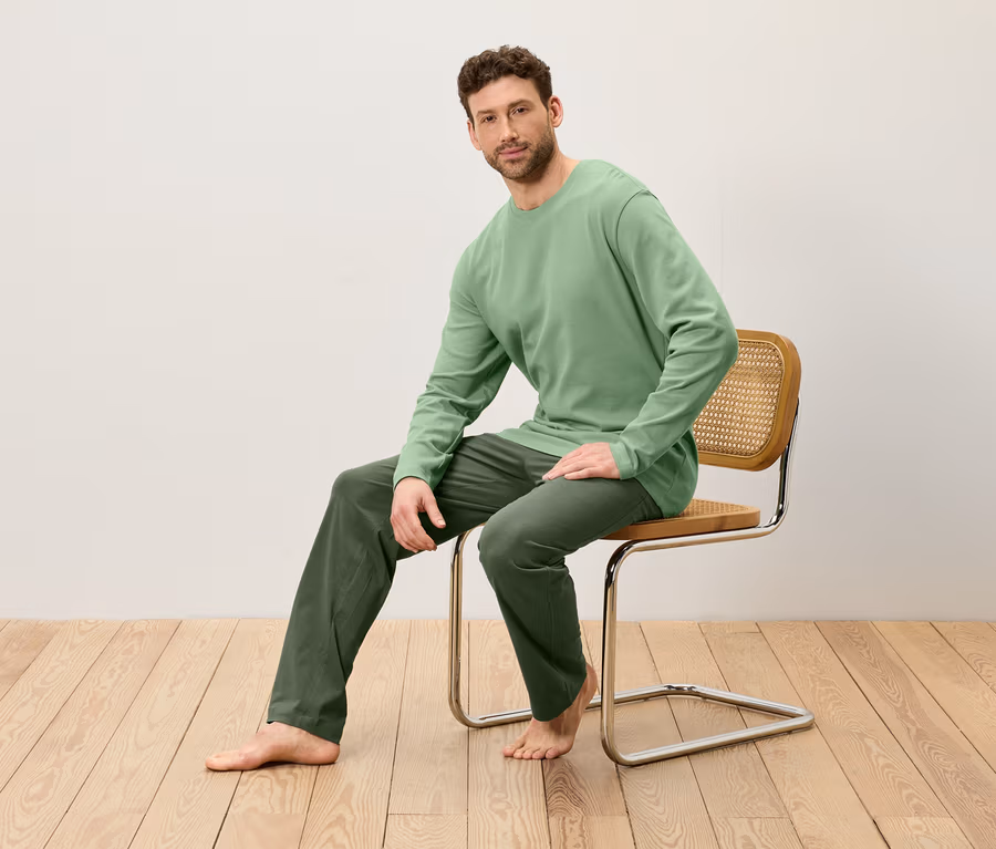 - Schlafanzug mit Oberteil in Interlockqualität, Hose Single-Jersey