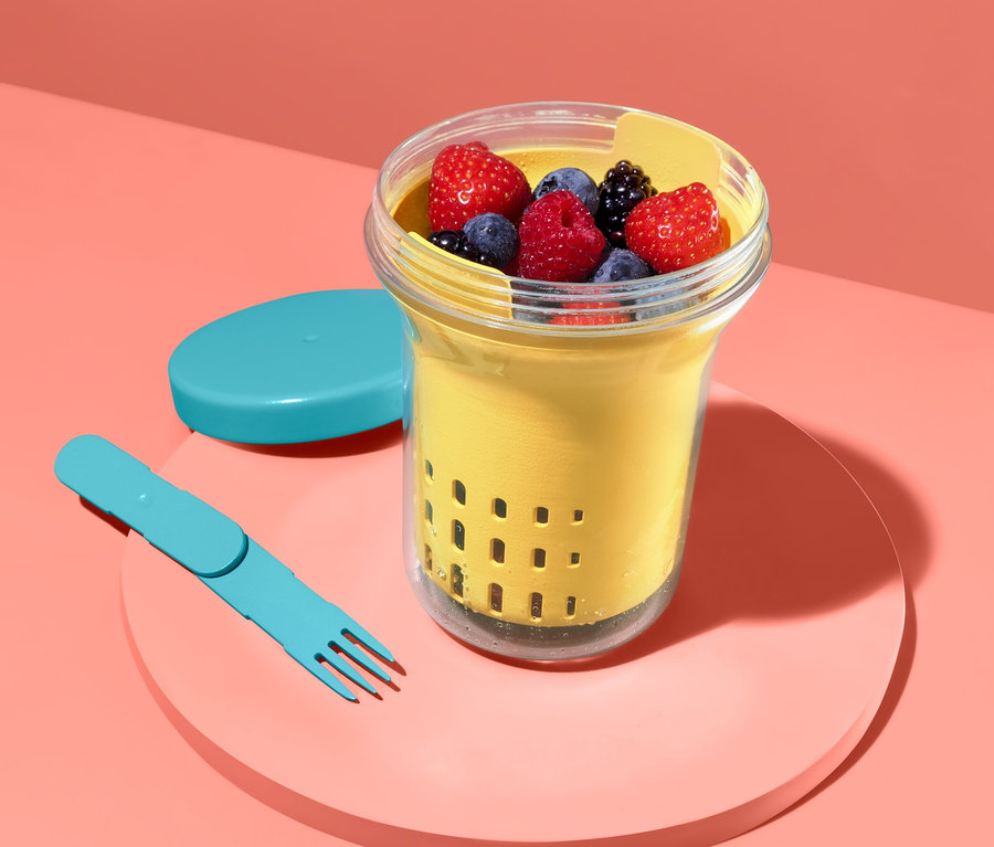 In dieser Box lassen sich frisches Obst, Früchte oder Gemüse bequem und sicher transportieren – ideal für den Ausflug, das Picknick oder das Essen im Garten. Eine kleine Besonderheit ist dabei das integrierte Abtropfsieb, durch das Wasser abtropfen kann und der Inhalt im Trocknen bleibt. Sollte das nicht gewünscht sein – zum Beispiel bei Salat mit Dressing oder Pasta mit Sauce – kann man das Sieb aber auch draußen lassen. Die Box ist aus BPA-freiem Kunststoff gefertigt und natürlich auslaufsicher. Eine Gabel ist auch schon mit dabei und kann bequem im Deckel verstaut werden.