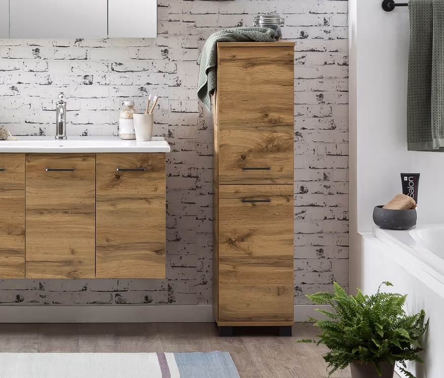 Der Spiegelschrank gehört zu den Klassikern im Badezimmer – und in dieser Ausführung von Schildmeyer kommt er in besonders elegantem Design daher. Die drei Spiegeltüren bilden geschlossen eine zusammenhängende, großzügige Spiegelfläche, dahinter finden auf sechs Einlegeböden aus Glas alle wichtigen Waschutensilien einen blickgeschützten Platz. Der Wandschrank hat eine LED-Leuchte für die perfekte Ausleuchtung und eine Schalter-/Steckdosenkombination für Föhn, Rasierapparat und Co. im Inneren. Das Badmöbel ist made in Germany und wurde mit hochwertigen Metallbeschlägen gearbeitet.