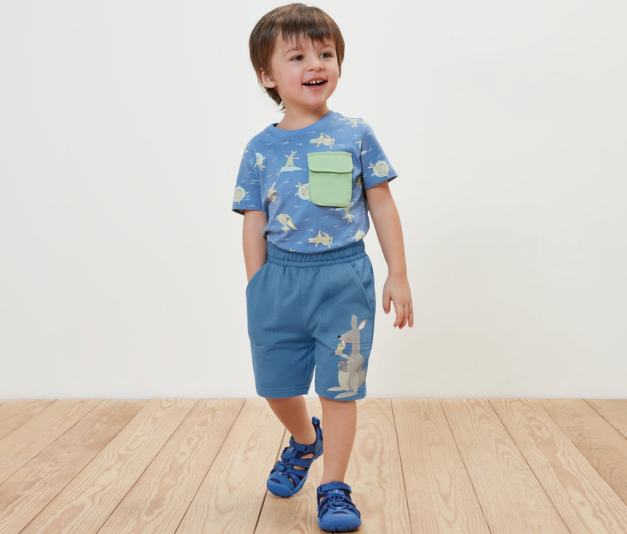 - Mittelblau mit mehrfarbigem Känguru-Print