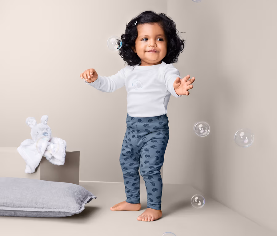 Leggings für Babys und Kleinkinder sind die perfekten Allrounder für jeden Tag und jede Gelegenheit. Und mit diesem Set gibt es gleich drei davon in verschiedenen Dessins. Mit ihrer weichen Single-Jersey-Qualität und dem hohen Anteil an Bio-Baumwolle liegen sie besonders angenehm auf der Haut, Elasthan sorgt dafür, dass die Hosen jede Bewegung mitmachen und dabei perfekt sitzen, ohne einzuschnüren.