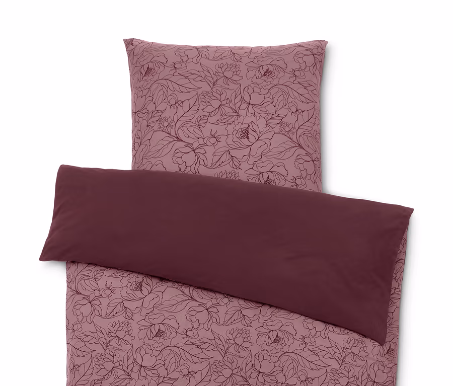 - 1 Seite roséfarben mit bordeauxrotem Print, 1 Seite bordeauxrot