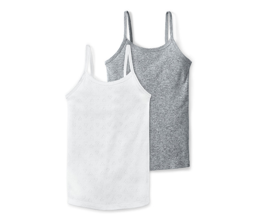 Zwei Kinder-Basics die einfach top sind: Mit diesen Unterhemden in Ajour-Optik können sich die Kids pudelwohl fühlen. Die Unterwäsche ist aus reiner Bio-Baumwolle gefertigt und hat durch die elastische Feinripp-Qualität eine optimale Passform. Außerdem verleiht die Ajour-Optik in Herzform den Hemdchen einen hübschen, verspielten Look.