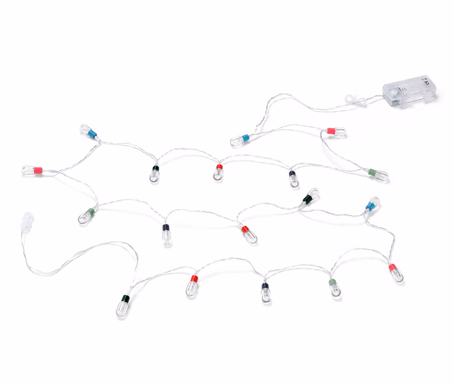 - 18 fest integrierte LEDs mit Mini-Glühbirnen und bunten Fassungen