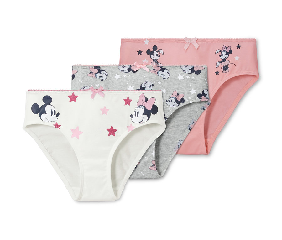 Drunter wird’s bunter und Mickey und Minnie sind immer mit dabei! Die Slips dieses Dreier-Sets haben alles, was Kids lieben: eine bequeme Passform, einen angenehmen Material-Mix mit viel Bio-Baumwolle und drei mausesüße Mickey- und Minnie-Dessins, die mit kleinen Glitzerdetails versehen sind.