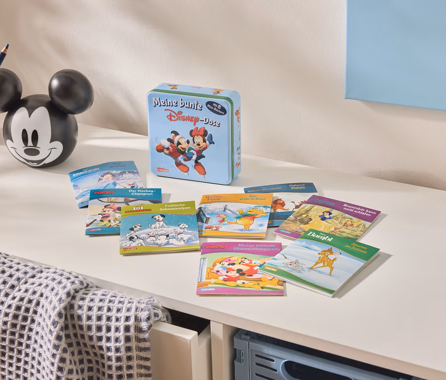 - Geschichten z.B. mit der Eiskönigin, mit Micky, aus König der Löwen