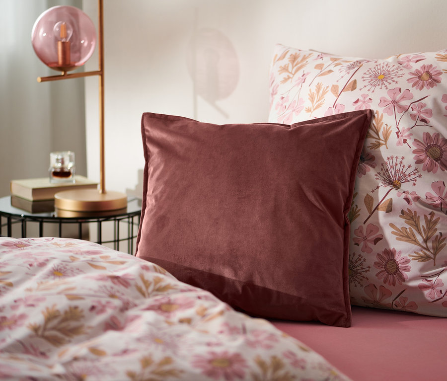 - Weicher, samtiger Bezug mit dekorativem Stehsaum
