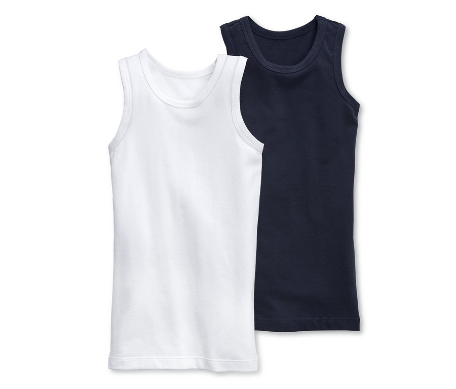 Wenn das Unterhemd angenehm sitzt, ist das die beste Basis für jedes Outfit. Diese beiden Unterhemden sind in weicher, formbeständiger Feinripp-Qualität aus Bio-Baumwolle gefertigt und bieten einen hohen Tragekomfort. Sie sind gerade und schmal geschnitten und haben elastische Halsausschnitte.