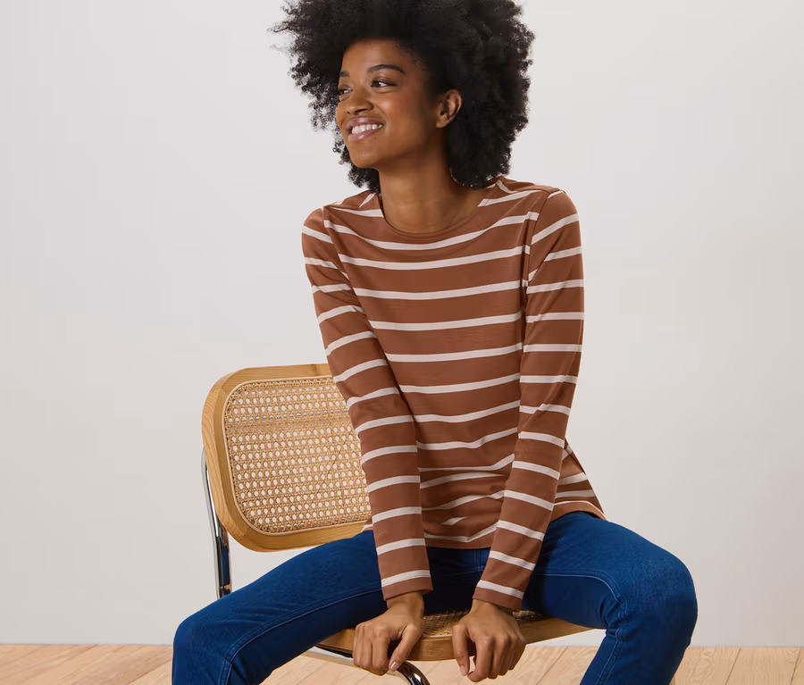 Gestreiftes Langarmshirt, cognac