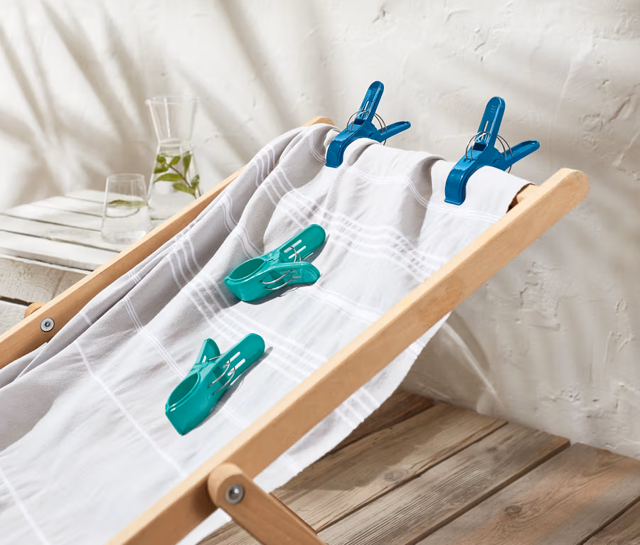 - Zum Befestigen von Badetüchern an Liegestühlen
